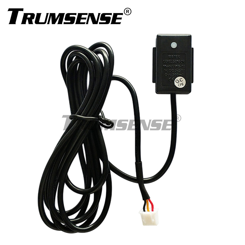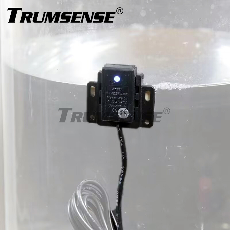 This product can only be installed in non-metallic containers or pipes, such as plastic, glass, or ceramic. Mounted on the outer wall of the container, it avoids direct contact with the measured liquid and is not susceptible to corrosion from strong acids and bases, nor to scale. To adjust the sensor's sensitivity after installation due to varying container thicknesses, remove the QC label, secure the sensor to the container or pipe, adjust the liquid level to the desired sensing position, and then press and hold the button in the small circular hole for approximately 3 seconds until the blue status indicator flashes. Release the button. The sensor will then sense the liquid level as it approaches the desired level.