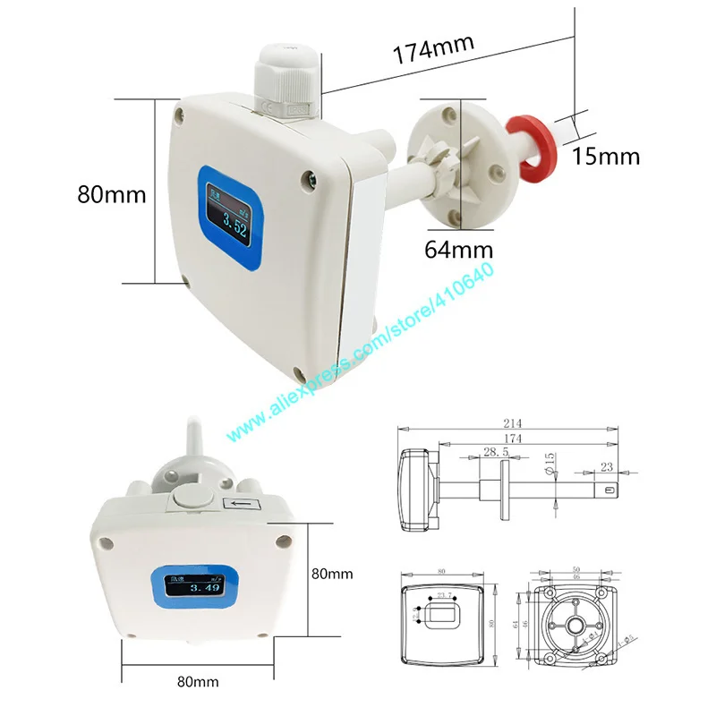 The ducted wind speed sensor, the shell is made of high temperature resistant and corrosion resistant material, the sensor is based on the principle of heat dissipation, and the breeze can also be detected. Even in harsh environments, the performance is stable and reliable; compared with other traditional wind speed sensors, better stability can be obtained, which can ensure faster and accurate micro wind measurement and accuracy. Linear compensation and temperature compensation are realized automatically, so the accuracy and High resolution; no zero offset, excellent long-term stability, and high cost performance. In addition, this series of sensors can withstand instantaneous high wind speed and high wind pressure.