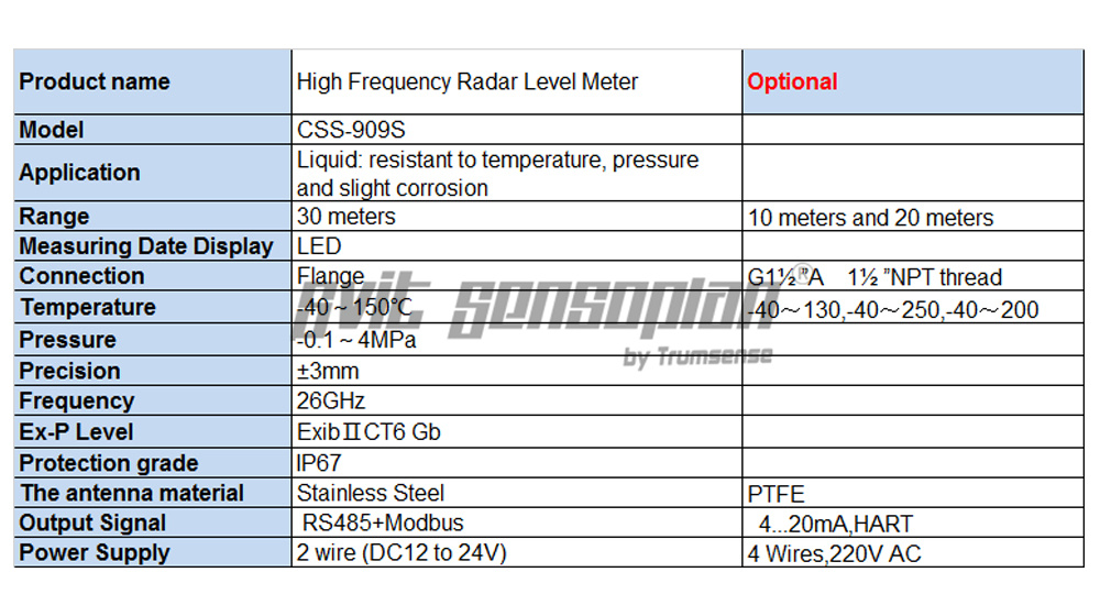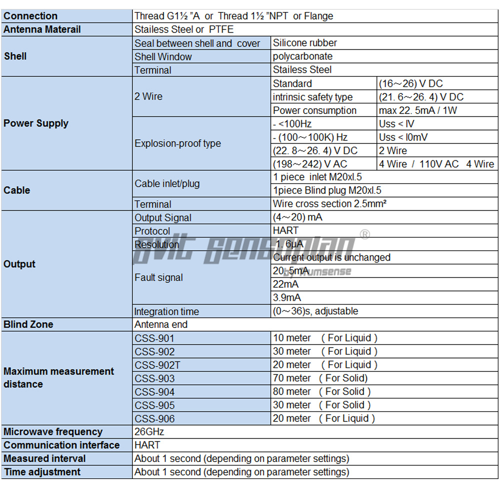 l The characteristics of 26G radar level meter: