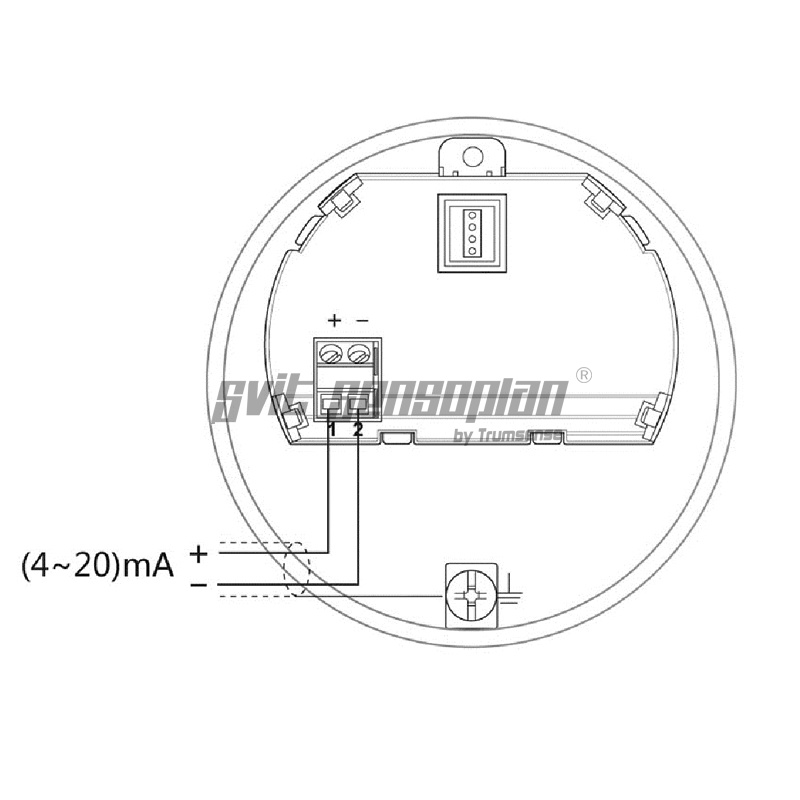 (4~20)mA/HART (Two wire system) The power supply and the output current signal sharing a two core shield cable. The supply voltage range see technical data. For intrinsically safe type must be a safety barrier between the power supply and the instrument.