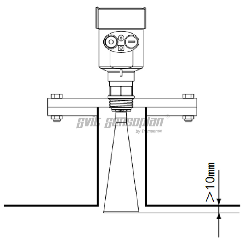 Antenna extends into the tank at least 10mm distance.