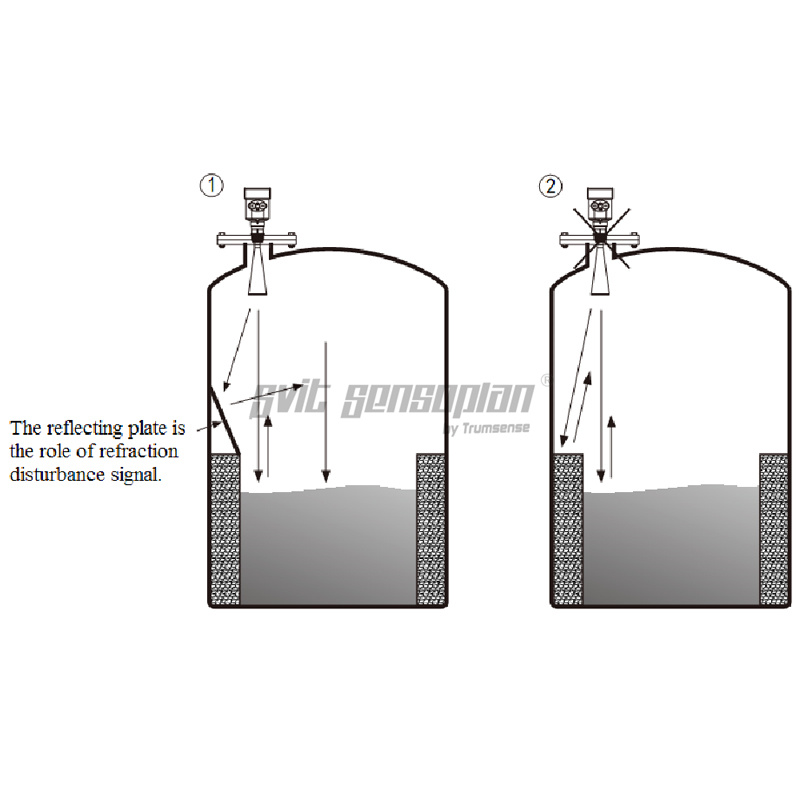 (Due to the solid surface tilt will cause the echo attenuation, even Loss of signal.)