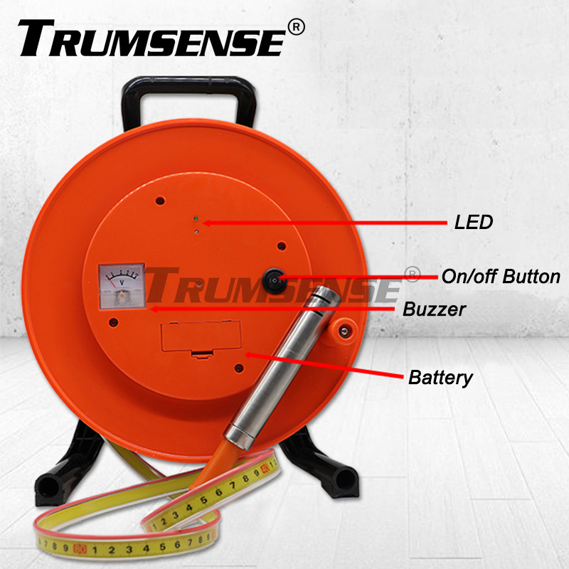 A)When the contact of the probe contacted with water level, the beeper will beep, the indicator lights, the voltage meter moves, it means now you need to slow down the steel ruler cable putting, so that you can find the position of the sound or indicate to read the depth size.