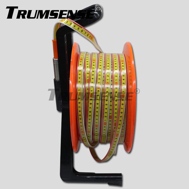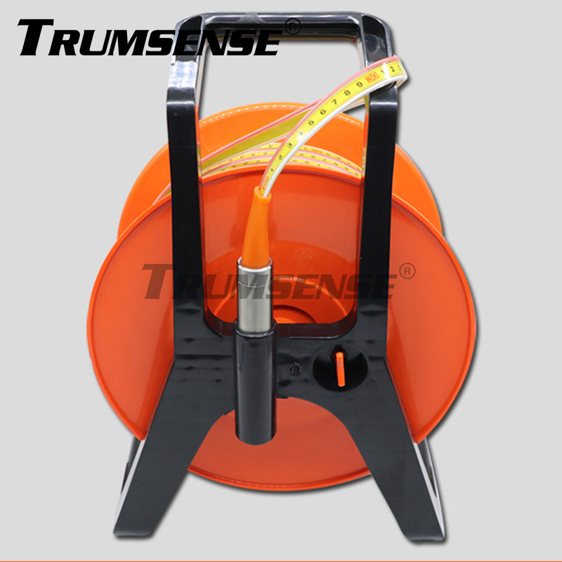 When you measure, loose the wire spool, press the power button, put the probe into water level pipe, hold the steel ruler cable, move it slowly deep down to the the pipe. When the contact of the probe contacted with water level, the receiving system beeper will continuously beeping. Now you can read the depth size in the pipe orifice, that is to say the distance between under ground water and the pipe orifice.(If in your site, you can’t hear the beeper due to the high pitch noise, you can observe the indicator and voltage meter.