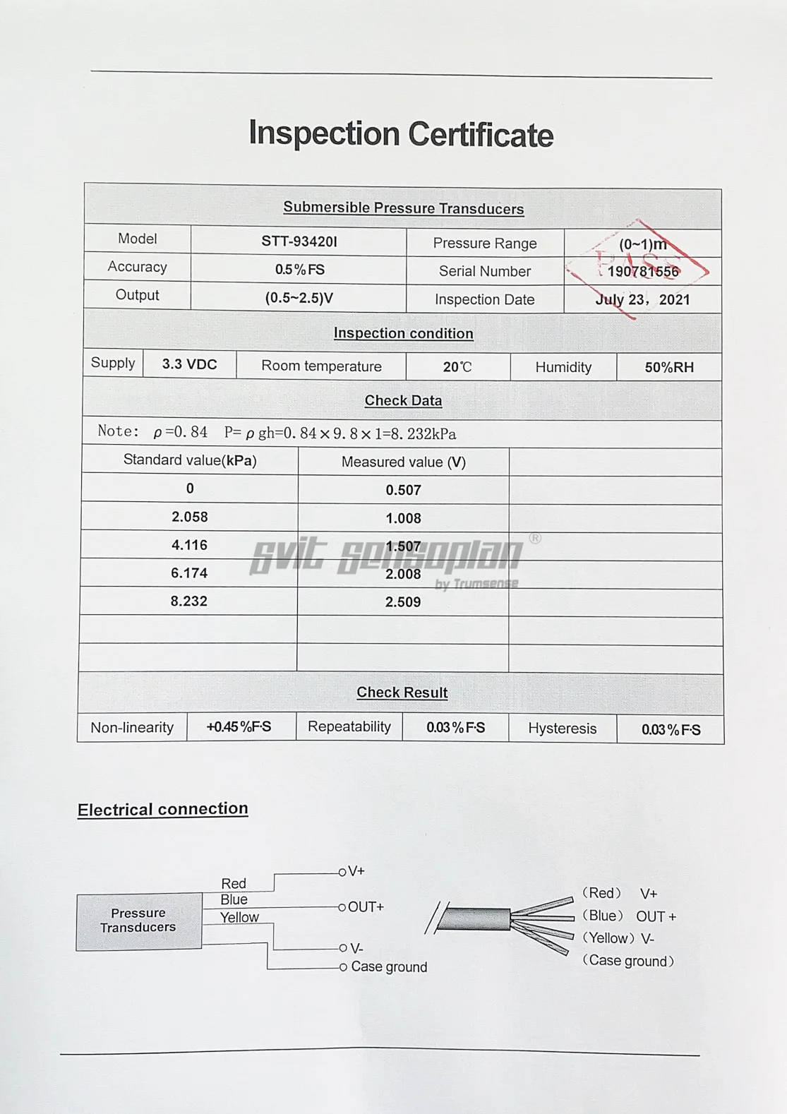 We are the ODM factory, each pressure core and product has unique series number, means each product has its production history, testing history history, each transducer will reach you with a unique inspection report as below :